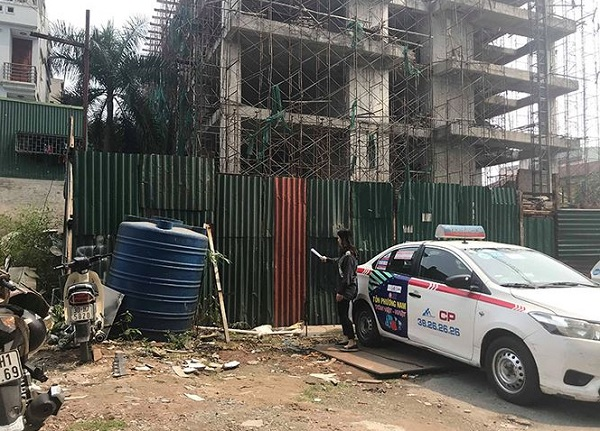 Một đường cứu hỏa vào chung cư Thăng Long Garden Minh Khai bị quây tôn bịt kín.