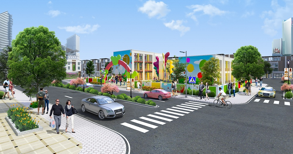 Phối cảnh một dãy phố thương mại sầm uất nằm trong dự án Eco Town Long Thành