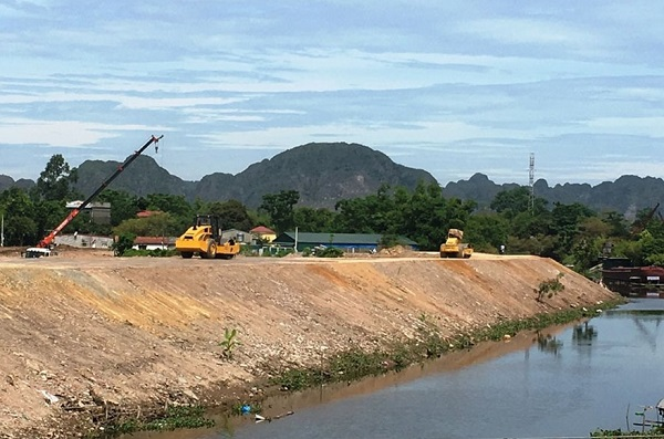Cụ thể, ngày 3.6, đoàn kiểm tra phát hiện tại Km10+200 đến Km10+400 thuộc tuyến đê sông Chanh, Cty bêtông Ninh Bình san lấp mặt bằng, phá dỡ tường rào của Cty san lấp xuống bờ sông, chiều dài 180m, rộng từ 2,5-3m. Đoàn kiểm tra yêu cầu Cty giải phóng hết số vật liệu trên, trả lại mặt bằng như hiện trạng ban đầu xong trước ngày 9.6.2018.