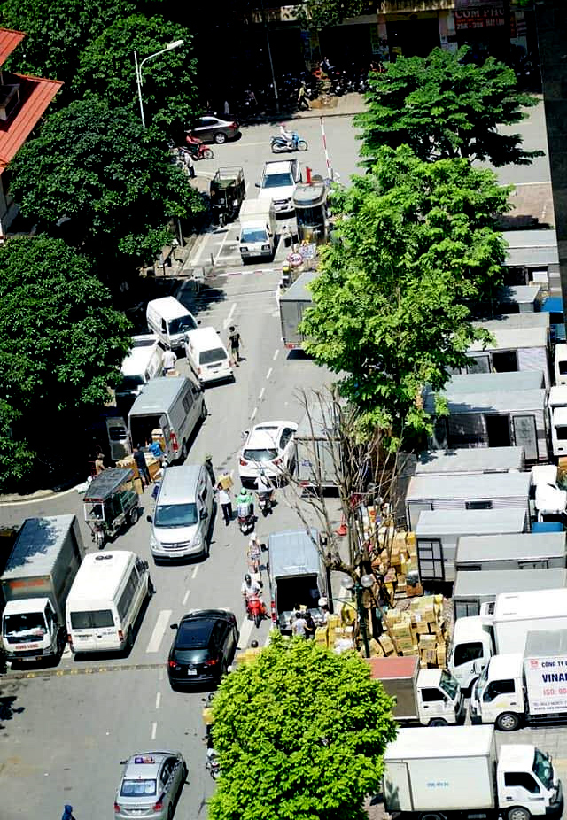 Xe tải ra vào khu chung cư Hapulico nhộn nhịp