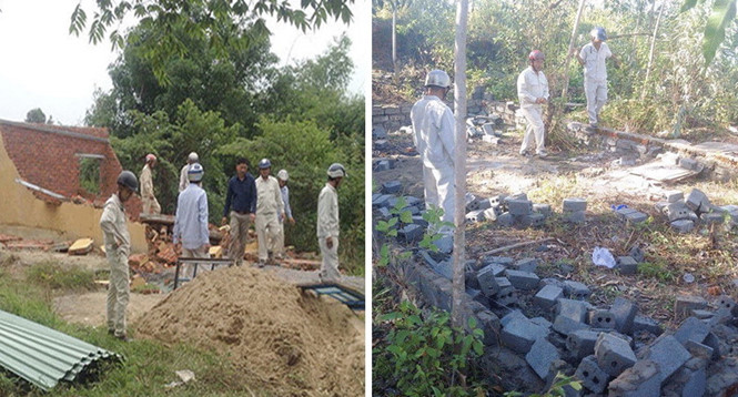 Ông Bùi Trung Khánh, Phó chủ tịch UBND P.Hòa Khánh Nam, cho hay trong ngày 13.2 (28 tháng chạp), ông Hồ Văn Thành (ngụ tổ 63) được phát hiện đang cấp tập cho người xây nhà diện tích 30m2, tường cao 4,5m không phép. Hai ngày sau (tức 30 tết), lực lượng chức năng tiếp tục ngăn chặn nhóm 8 công nhân xây nhà trên đất không sổ, không phép ở phía sau chợ Hòa Khánh Nam. Bị đình chỉ thi công, nhóm thợ xây bỏ chạy, vứt lại vật liệu xây dựng, đồ nghề... khiến cán bộ phường phải vất vả điều động xe thu gom.