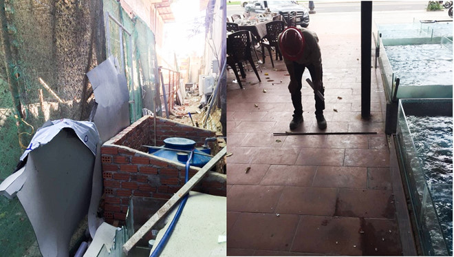 "Các công nhân đã làm rơi gạch đá và những cây gỗ, thanh sắt lớn dài cả mét rớt xuống nhà hàng. Do mái che của nhà hàng bằng bạt và tôn nên hầu hết đều bị xuyên thủng, đe dọa tính mạng mọi người", một nhân viên nhà hàng X.C nói.