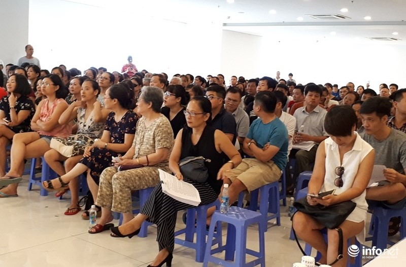Cư dân Hòa Bình Green City đặt các câu hỏi liên quan đến quyền lợi của mình với đại diện chủ đầu tư. Ảnh: Nguyễn Lê