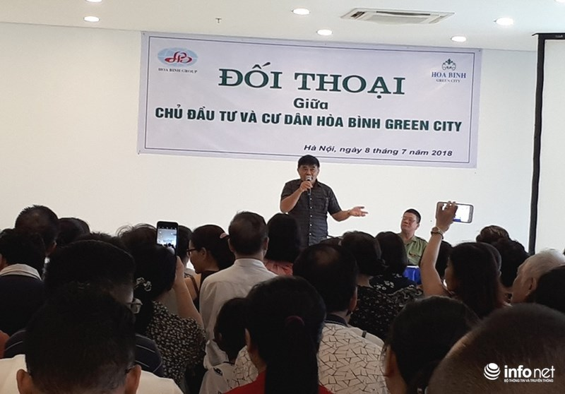 Chiều muộn 8/7, Công ty TNHH Hòa Bình, chủ đầu tư của dự án Hòa Bình Green City đã tổ chức cuộc đối thoại với cư dân để làm rõ những vướng mắc nêu trên.