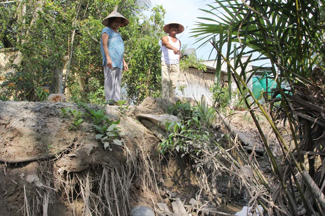 Theo người dân địa phương, tình trạng trên là hệ quả của việc nạo vét lòng kênh rạch thuộc dự án “Cơ sở hạ tầng khu du lịch cù lao Thới Sơn” của UBND TP.Mỹ Tho gây ra.