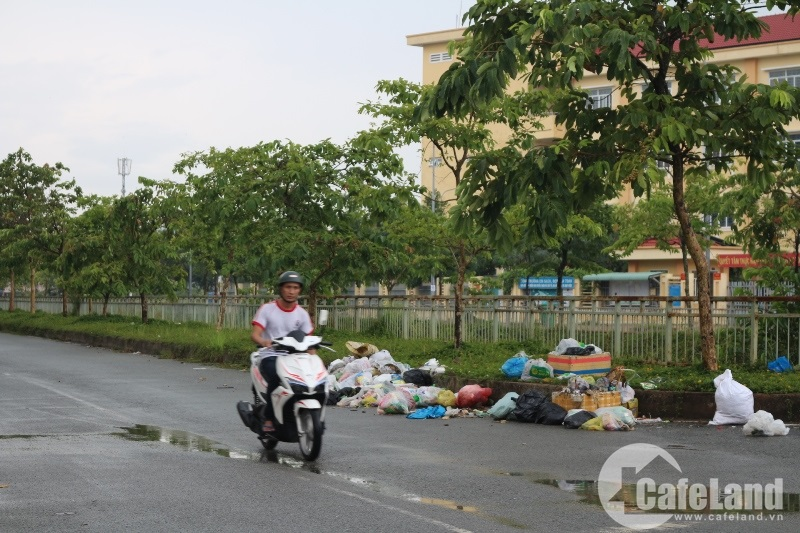 Rác thải tràn ra lề đường bên trong khu tái định cư Vĩnh Lộc