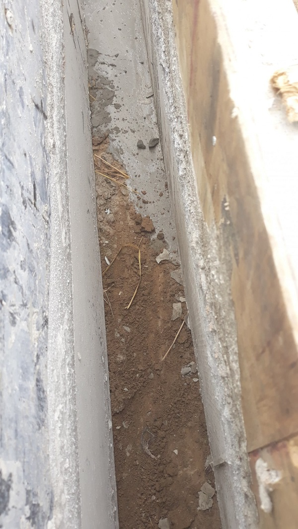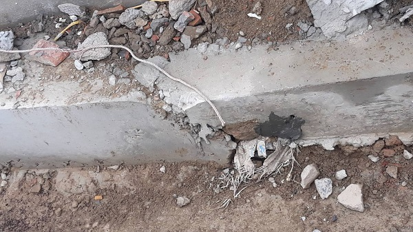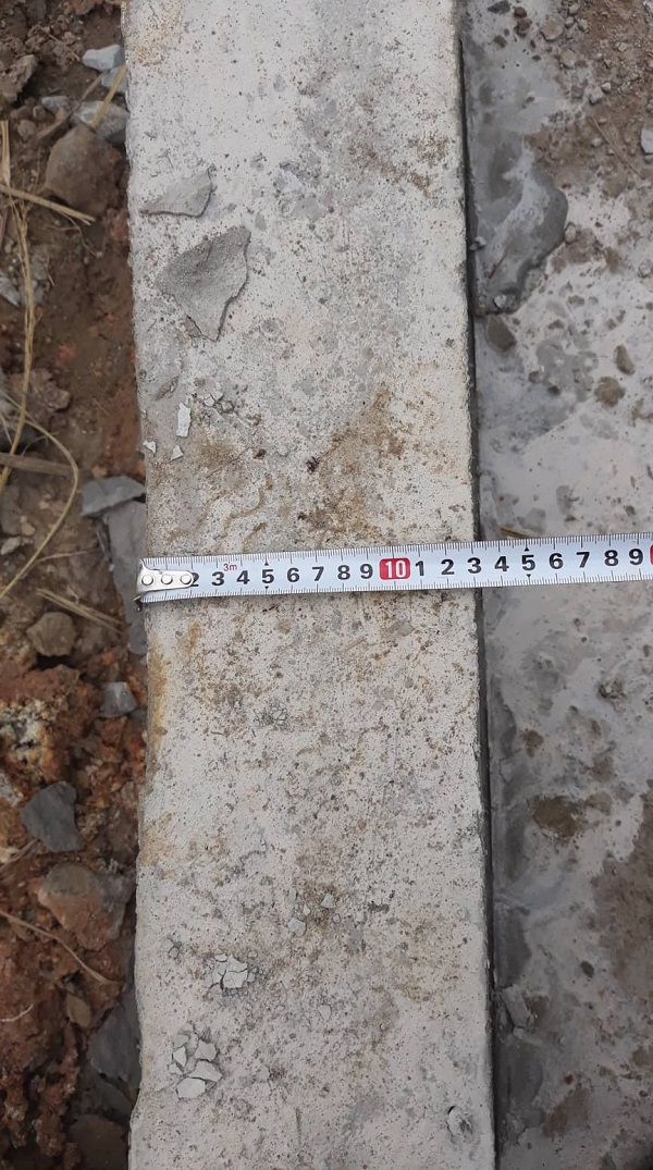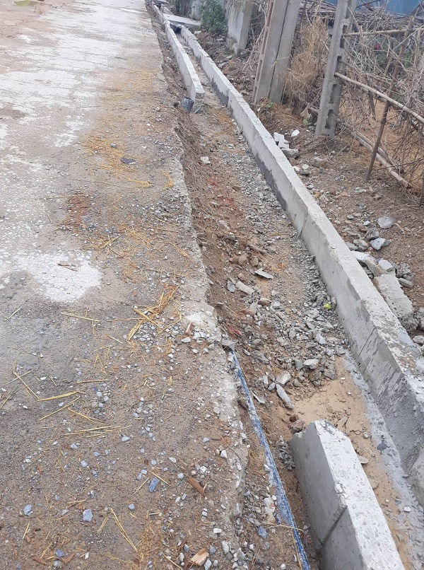 Theo quy định trong thiết kế dự án, lòng đáy mương phải có lớp bê tông dày 15cm trên lớp đá dăm (4x6) dày 10cm. Nhưng thực tế phần nền mương phía dưới chủ yếu là đất cát, mặt nền được tráng qua lớp xi măng mỏng.