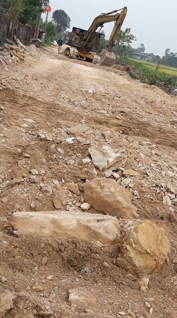 Tại dự án đi qua khối 1, đất được đơn vị thi công tập kết đến đổ đường còn quá nhiều đá, thậm chí có cả đá khổ lớn và rễ cây nhưng phía chủ đầu tư cho đó là vấn đề nhỏ nhặt.