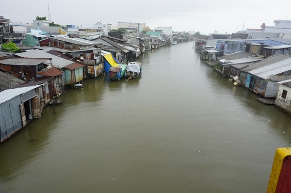 Hầu hết nhà ven sông ở TP.Cà Mau xây sai phép, không phép. Ảnh: N.H