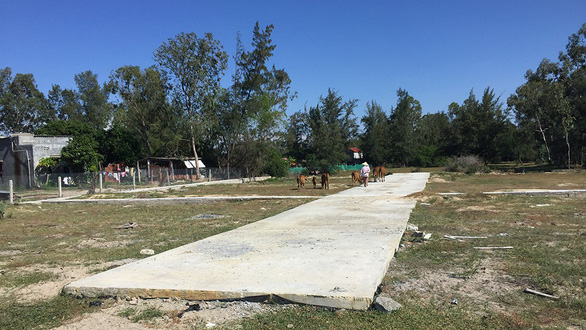 Đường vào "dự án" này vẫn chỉ là một lối đi nhỏ, khu đất nhìn bên ngoài chẳng có gì là một dự án "gần biển, gần sông, có thể làm nhà ở, shophouse" như những thông tin giới thiệu, thực tế chỉ là một bãi đất trống, nằm giữa rừng dương và bao kế bên là nghĩa địa.