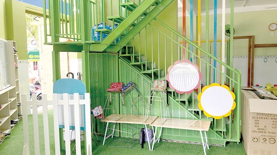 Khu đất thừa chưa được 10m² đang làm cầu thang sử dụng tạm tại Trường Mầm non Misa