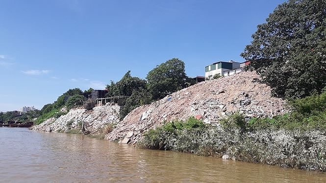 Trước phản ánh của báo chí liên quan đến tình trạng đổ đất, phế thải lấn chiếm khu vực bờ vở sông Hồng, UBND phường Bạch Đằng (Hai Bà Trưng, Hà Nội) đã phối hợp với cơ quan chức năng liên quan kiểm tra xử phạt nặng hành vi này, đồng thời đề xuất xây dựng tường rào chống đổ trộm phế thải.