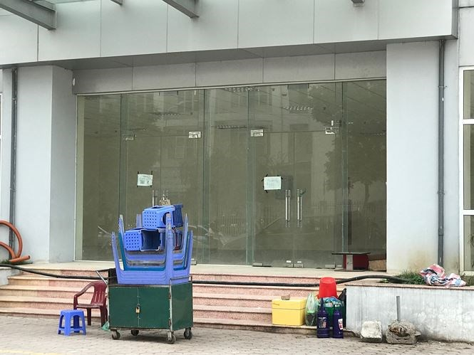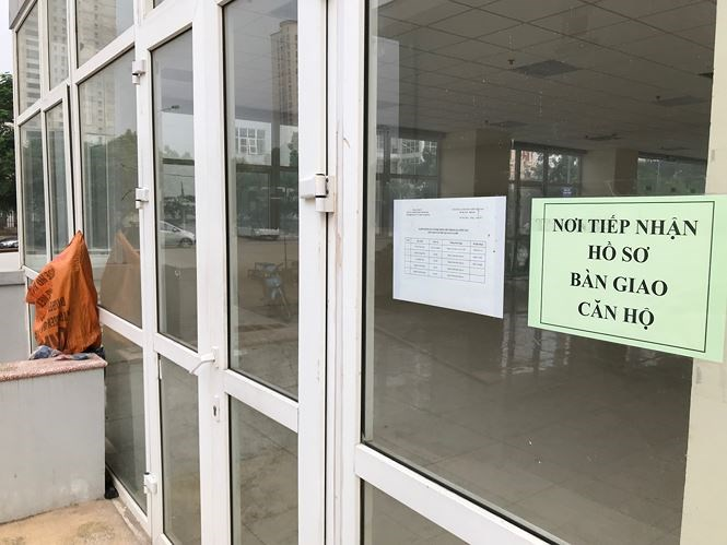 Nơi tiếp nhận hồ sơ bàn giao căn hộ A14 Nam Trung Yên cửa đóng then cài, không một bóng người.