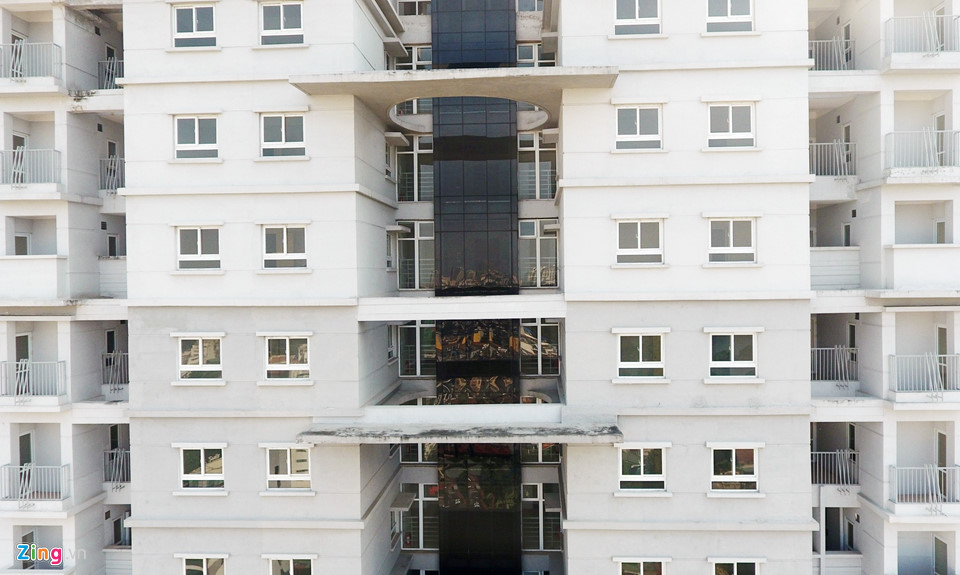 Dù đã đưa vào hoạt động từ nhiều năm nhưng nhiều căn hộ ở đây vẫn trong tình trạng cửa đóng then cài hoặc niêm phong. (Ảnh: Zing)