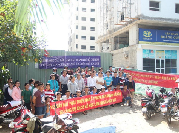 Vừa qua, nhiều người là cán bộ, công chức, viên chức kéo nhau đến công trình dự án nhà ở xã hội (NƠXH) ở 35 Hồ Học Lãm, phường An Lạc, quận Bình Tân, TP HCM căng băng-rôn để phản đối việc chậm bàn giao căn hộ, gây náo loạn cả một khu vực.