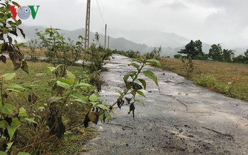 Những hàng cột điện được dựng lên, mà không có cơ hội được phục vụ người dân. Một số khác được đơn vị thi công để nằm dưới đất lẫn trong đám cỏ dại um tùm. Con đường dẫn lên điểm tái định cư cũng đã có dấu hiệu xuống cấp sau nhiều năm được xây dựng.