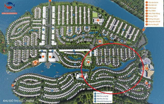 Tọa lạc tại phường Hoà Hiệp Nam, quận Liên Chiểu, Đà Nẵng, Eco Charm Premier Island có tổng diện tích 59,5ha, trong đó 21,8ha đất ở, 5,2ha đất thương mại, 18,6 ha đất công cộng, 13,9ha đất giao thông. Diện tích đất đa dạng từ 105m2 - 240m2.