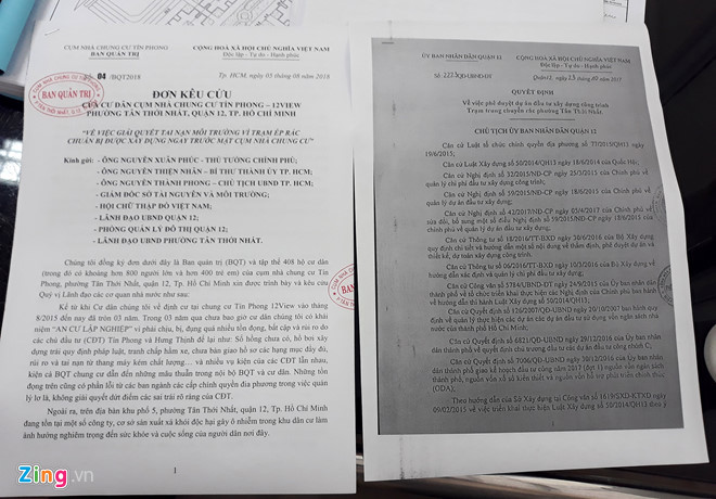 Ngày 20/8, đại diện Ban quản trị chung cư Tín Phong cho biết sau khi gửi đơn cầu cứu lên các cấp chính quyền, người dân đã nhận được văn bản trả lời từ UBND TP.HCM.