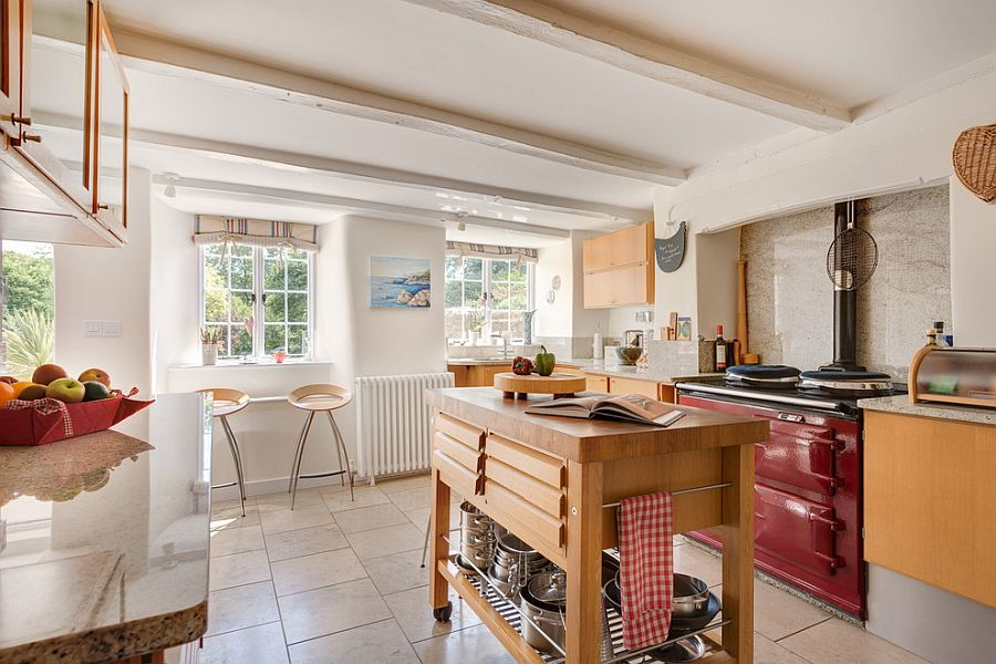 Đảo bếp di động có thể được cất giấu khi không sử dụng.