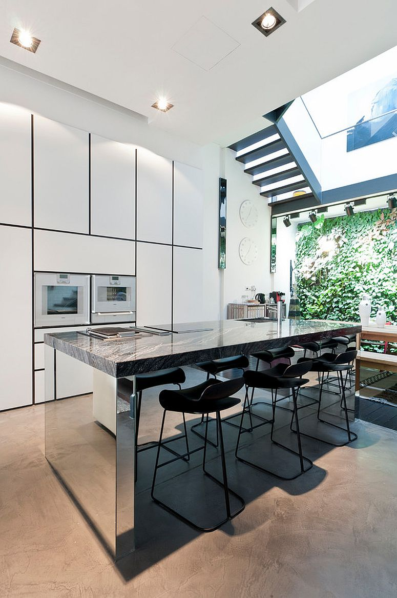 Ánh sáng phản chiếu của đảo bếp mở rộng không gian cho nhà bếp.