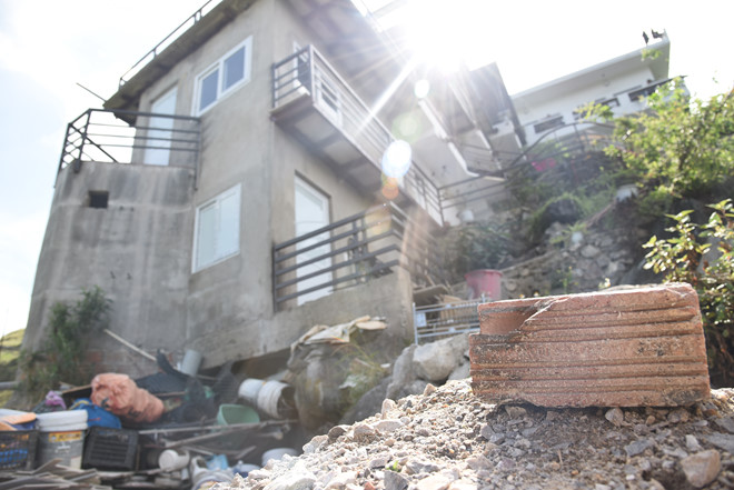 Bằng mắt thường có thể thấy rõ công trình đứng chân trên một khối đá vôi khổng lồ - nền địa chất đặc trưng của khu vực cao nguyên đá. Ảnh: Ngọc Tân.