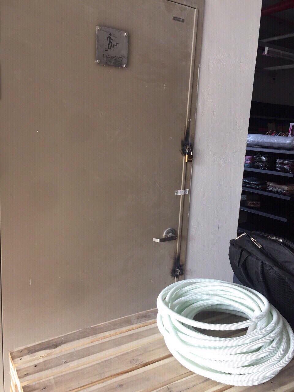 Cửa thoát hiểm bị khóa trước khi cư dân có ý kiến. (Ảnh: Châu Anh).