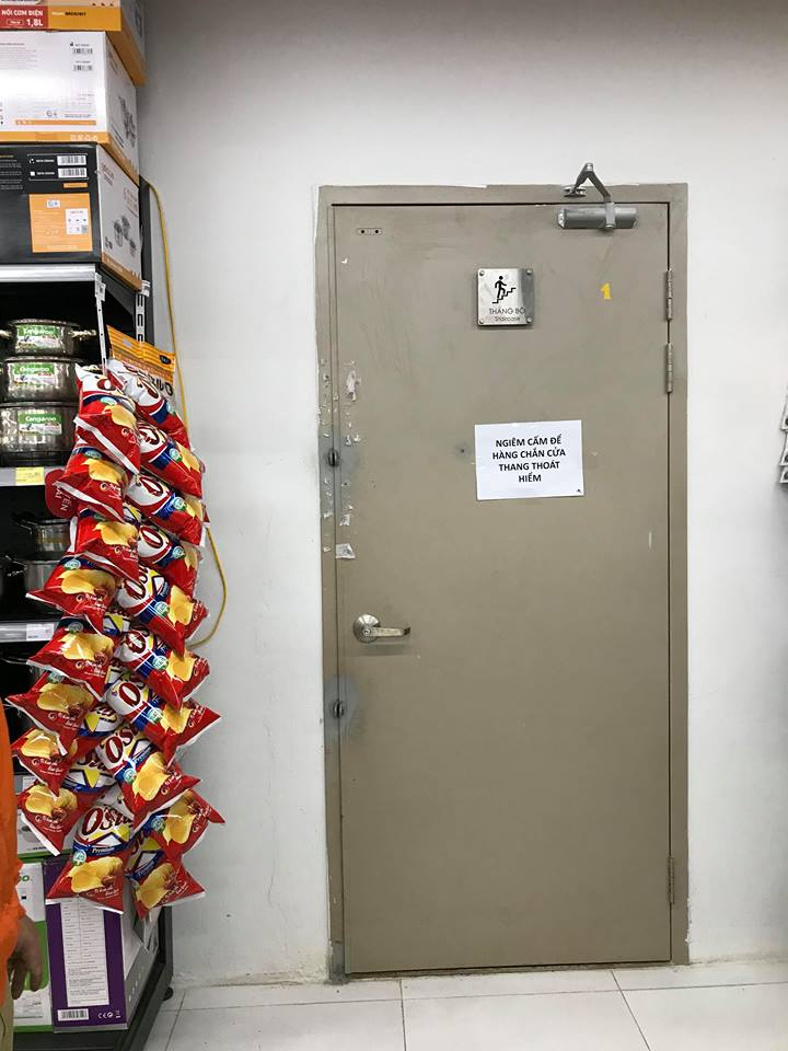 "Nếu trong trường hợp có hỏa hoạn thì chúng tôi không biết phải thoát ra bằng cách nào, ngay cả bây giờ khi cửa không bị khóa, nhưng nằm trong siêu thị, có hỏa hoạn chắc chắn cũng sẽ rất nguy hiểm", anh Công cho hay.