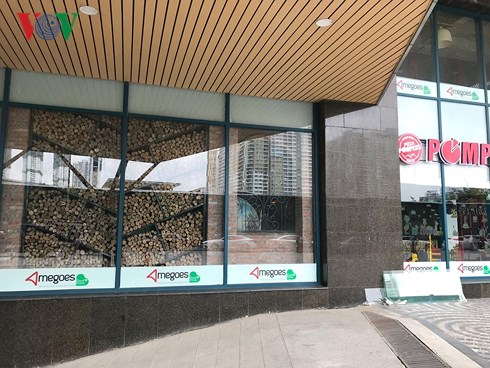 Một nhà hàng bán đồ nướng ở ngay tầng 1 nhà No4 Udic Complex chứa cả "kho" củi khô để dùng dần.