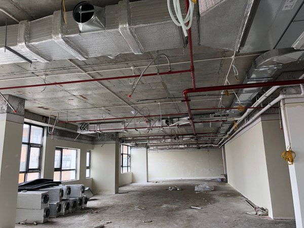 Nhiều khu vực chưa thi công hoàn thiện, chưa lắp đặt cố định đầu báo cháy, đầu phun sprinkler, hệ thống hút khói. Ảnh: Cảnh sát PCCC Hà Nội.