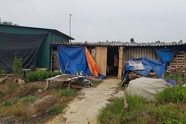 Đất đá đổ cao xung quanh, nhà cũ thành rốn nước. Mưa to là ngập như ao, anh chị phải cất tạm cái lán trên đỉnh dốc, để tránh lụt những hôm mưa bão.