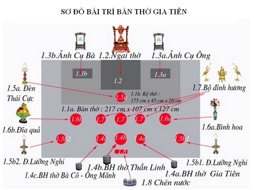 Cách bài trí bàn thờ gia tiên cần chú ý cách bày trí vật phẩm, lễ cúng trên bàn thờ gia tiên cần sắp xếp như sau: