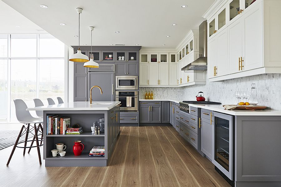Ở đây màu trắng có thể được sử dụng để mang lại cảm giác ấm áp, ấm cúng vì các sắc thái khác nhau của màu xám cho phép bạn thay đổi giữa các phong cách và chủ đề. Sử dụng màu xám cho tủ bếp và đảo trong khi vẫn giữ phông nền trắng là sự lựa chọn đơn giản và phổ biến nhất.