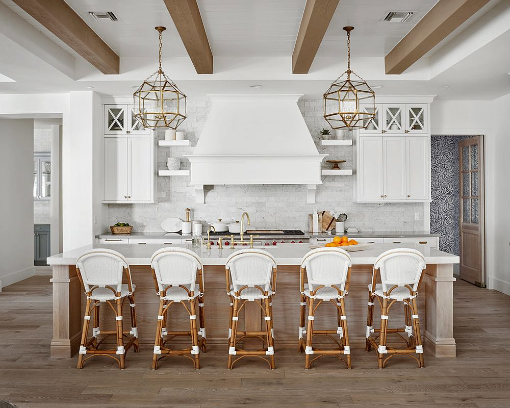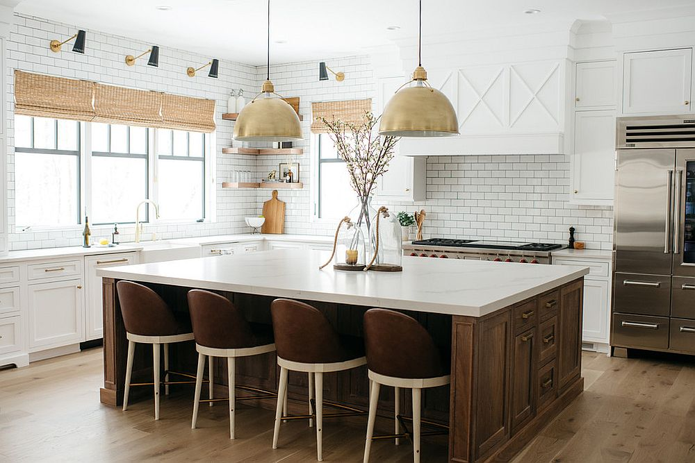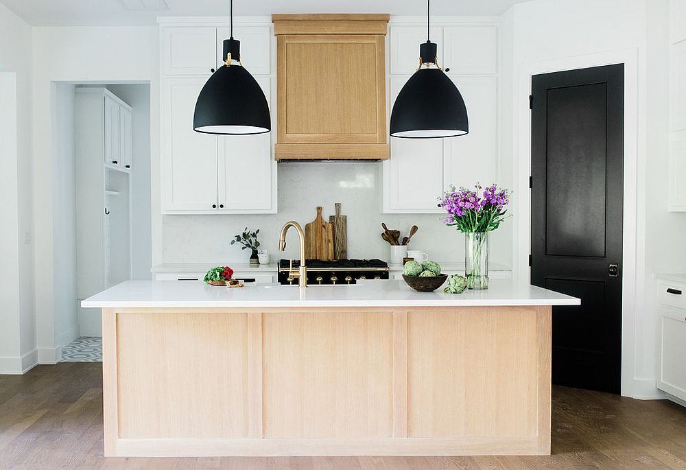 Màu trắng giữ cho mọi thứ hiện đại, gọn gàng và linh hoạt trong khi gỗ làm tăng thêm sự ấm áp, sang trọng và đôi khi hấp dẫn vượt thời gian cho không gian bếp. Phần tốt nhất của tất cả là làm thế nào bạn có thể thêm màu sắc cho nhà bếp này trong các phần nhỏ mà không làm thay đổi phong cách tổng thể.