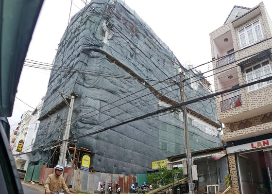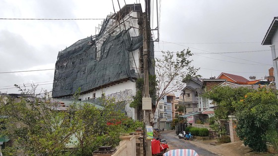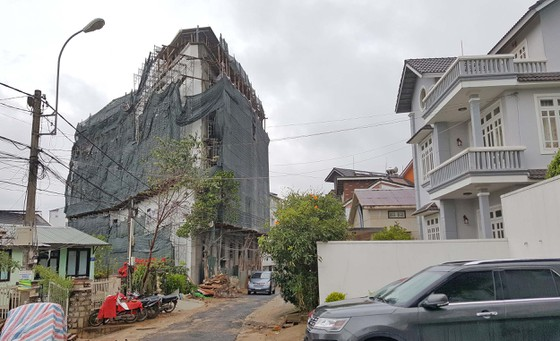 Ghi nhận tại địa chỉ số 1 Bis đường Hà Huy Tập, phường 3, TP Đà Lạt (tỉnh Lâm Đồng), công trình khách sạn đang trong giai đoạn hoàn thiện phần thô xây cao bất thường so với các căn nhà xung quanh.