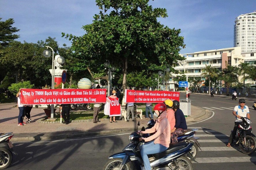 Các nhà đầu tư căn hộ du lịch treo băngrôn "cầu cứu" chính quyền tỉnh Khánh Hòa.