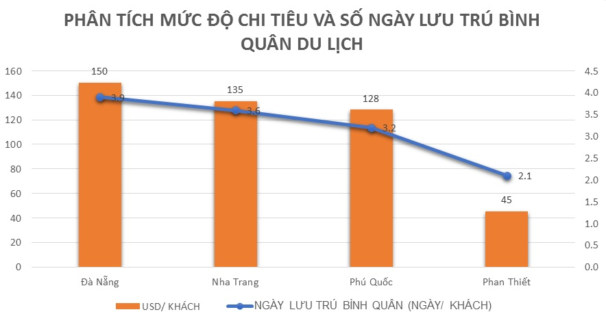 Biểu đồ phân tích mức độ chi tiêu và số ngày lưu trú bình quân của khách du lịch (Nguồn: Tổng cục Du lịch)