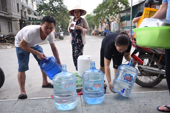 Người dân Hà Nội phải mua nước đóng bình để ăn uống sau sự cố nước sạch nhiễm dầu thải