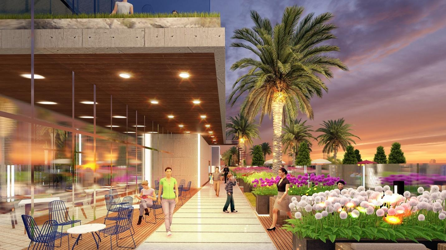 Vườn hoa nội khu kết hợp khu café thư giãn ở dự án cũng là trải nghiệm không nên bỏ qua. Bạn có thể dạy trẻ thơ khám phá nhiều điều về thiên nhiên rộng lớn và sự diệu kỳ từ cỏ cây hoa lá. Đây cũng là khu vực”check-in” hấp dẫn cư dân.