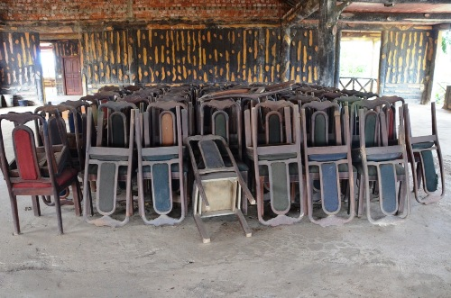 Bàn ghế xếp đống phủ bụi vì vắng khách. Ảnh: Phạm Linh.