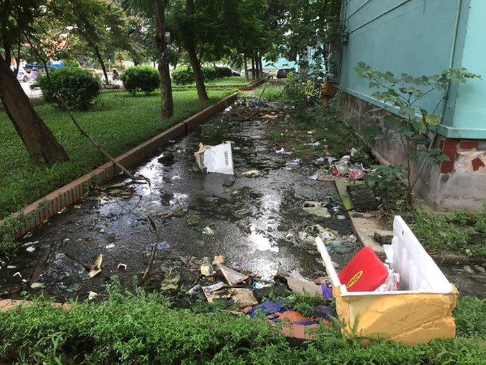 Bên cạnh đó là vấn đề ô nhiễm môi trường. Đây là hệ lụy từ việc các tòa nhà xây dựng không được đảm bảo kỹ thuật dẫn tới hệ thống thoát nước thải thi nhau đứt vỡ. Chính vì thế, nước thải đen ngòm, hôi thối đã bị chảy tràn ra khu vực tiểu cảnh, sân chơi rồi đọng thành vũng lâu ngày không khác gì những bể phốt lộ thiên.