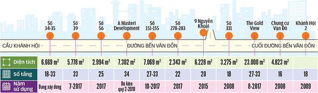 Cao ốc chen cứng trên đường Bến Vân Đồn, TP.HCM - Đồ họa: Tấn Đạt