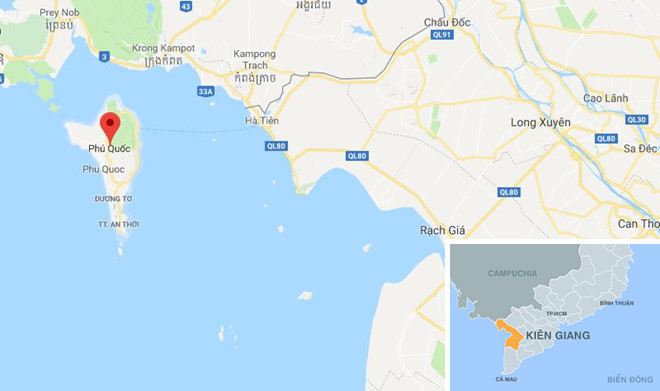 Phú Quốc (chấm đỏ). Ảnh: Google Maps.