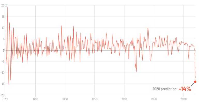 Ngân hàng Anh (Ngân hàng trung ương) cũng ra cảnh báo, nền kinh tế Anh có thể thu hẹp 14% trong năm nay. Đây sẽ là lần thu hẹp lớn nhất kể từ khi giảm 15% vào năm 1706, dựa trên ước tính của ngân hàng.