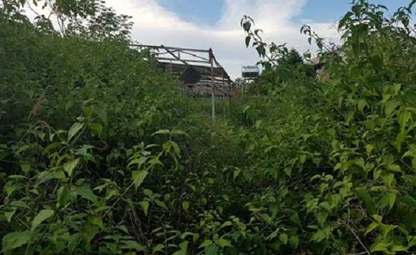 Cỏ mọc bít hết đường vào khu thực nghiệm.