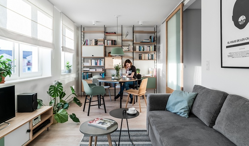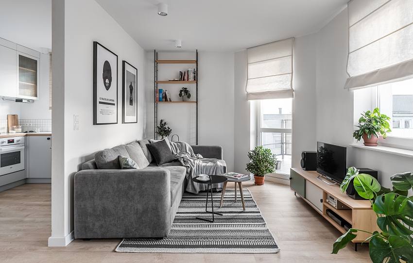 Alomuabannhadat - Căn hộ 46m2 này được thiết kế theo phong cách Bắc Âu với nội thất đơn giản nhưng gọn gàng, màu sắc nhã nhặn và tinh tế. Thiết kế cửa và bố trí cây xanh ở tất cả các phòng giúp thoáng đãng và tạo làn gió mới cho căn nhà.