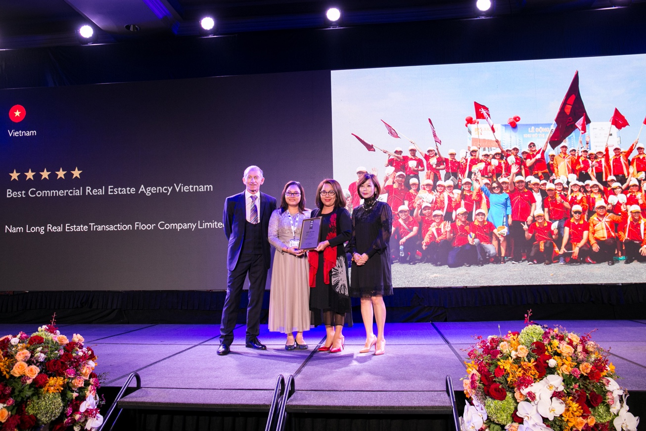 Và thật vinh dự, khi lần đầu tiên, Sàn Giao Dịch BĐS Việt Nam đã được xướng tên cho hạng mục giải thưởng “Sàn Giao dịch Bất động sản Xuất sắc nhất” (Best Commercial Real Estate Agency Vietnam) - Sàn Giao dịch BĐS Nam Long.