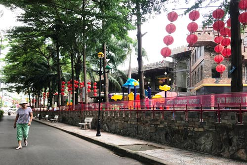 Trong khu vực Công viên Bình Phú, quận 6, một nhà hàng lớn vẫn đang hoạt động Ảnh: GIA MINH