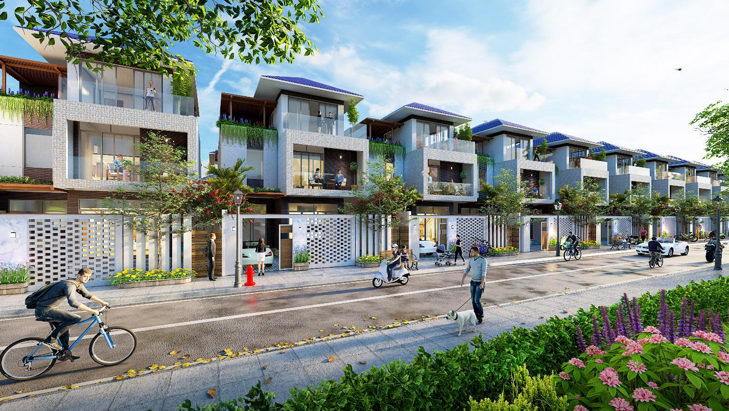 Phối cảnh khu biệt thự với không gian sống thoáng mát, trong lành