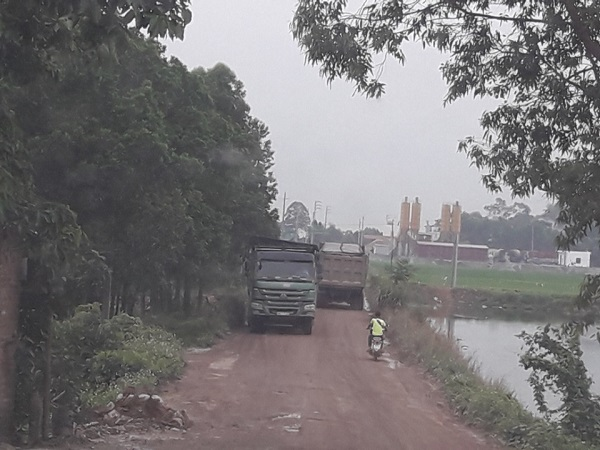 Con đường liên xã thì bé nhỏ mà bị cày nát các loại xe tải cỡ lớn, quá tải, thùng cao ngất ngư chở đất từ sáng sớm đến tối mịt.