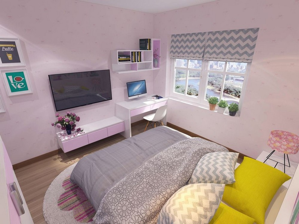 Không nên bố trí cửa sổ ở đầu giường ngủ để tránh ánh nắng chiếu thẳng vào mặt người nằm ngủ, gây mất ngủ và bất an. Màu sơn tường cạnh cửa sổ cần hợp với màu rèm, khung cửa. Các gam màu nhạt thường được chọn trong phòng ngủ để tạo cảm giác dễ chịu.